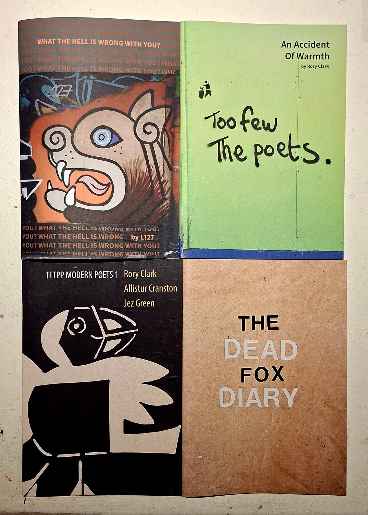 Following Allistur’s policy of taking every opportunity to read for any audience instead of my more selective approach is the ingredient in Too Few The Poets Press that has seen us publish 25 zines since December 2024 and the selling out of our first public social event in November of this year. An event largely attended by people in the embryonic stages of their encounter with poetic expression, and the storyteller’s art.